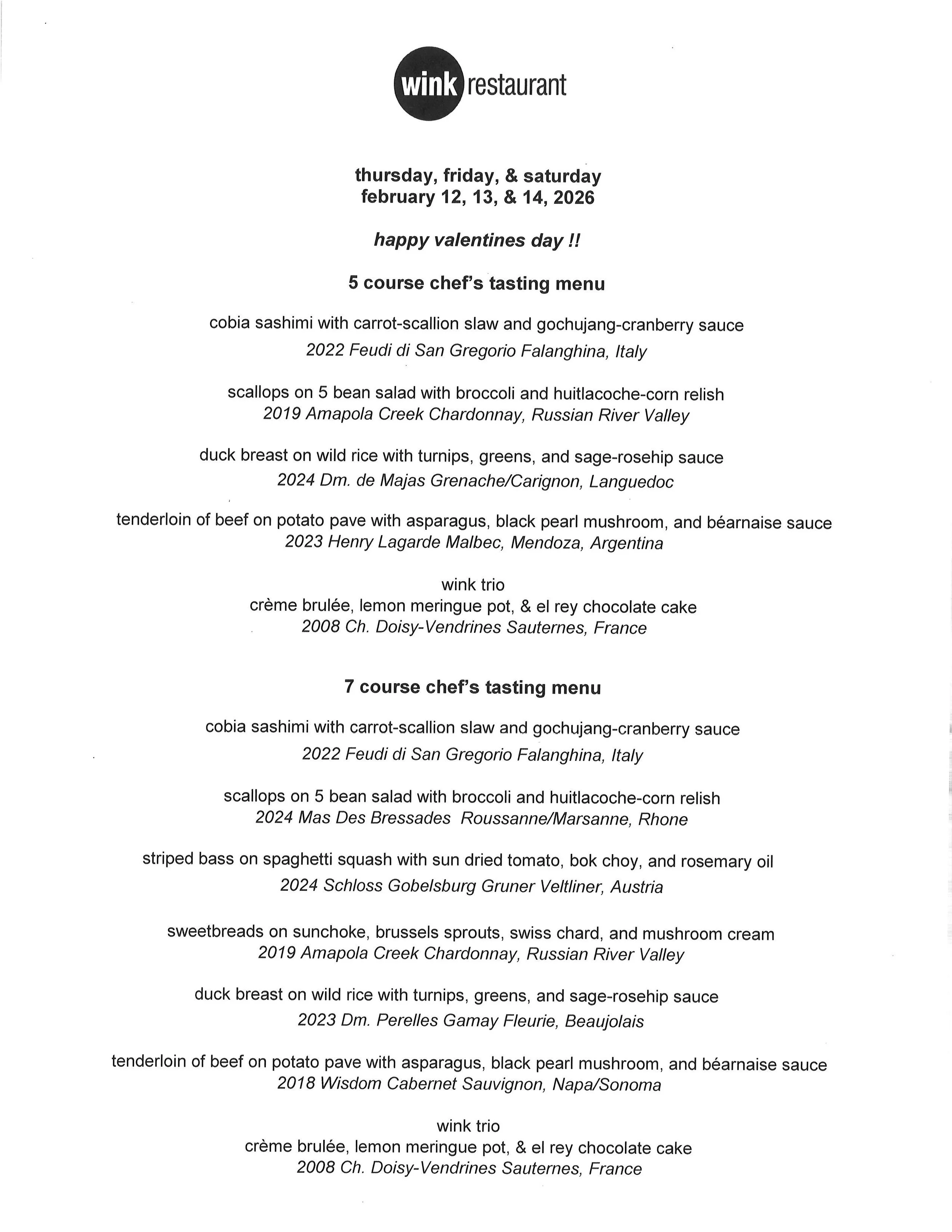 Scroll Down To See The Tasting Menus